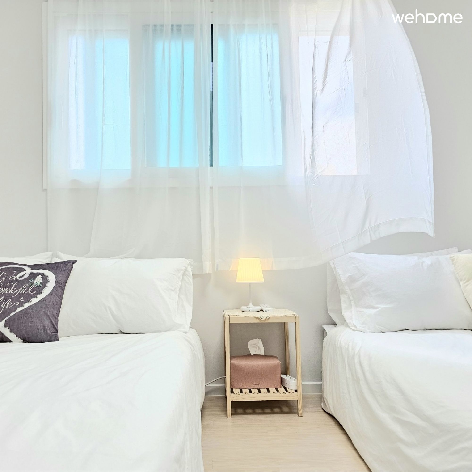 This house has three queen-size beds. There are a total of two bedrooms and one bathroom. All necessities for basic living are provided.