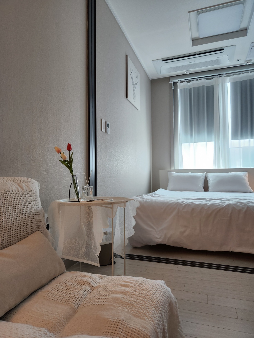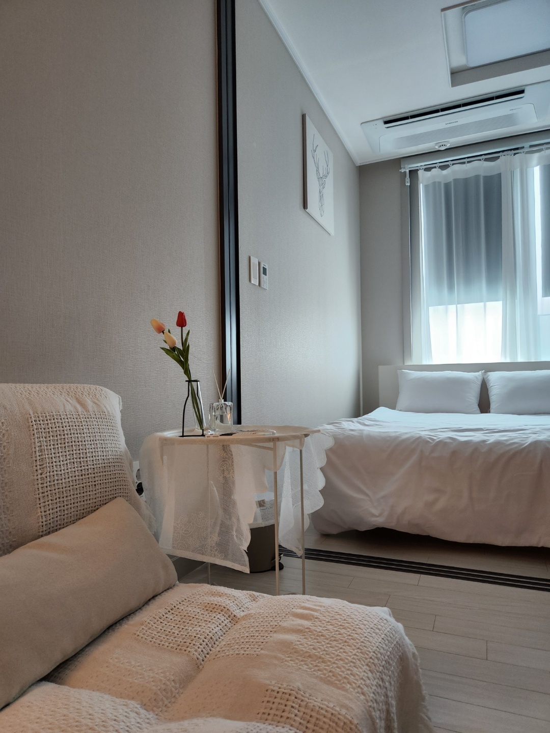 โThis accommodation allows cooking with induction and microwave. (Basic salt, sugar, soy sauce, red pepper powder, and cooking oil are provided by the accommodation:-D) โ Mechanical parking lot on the first floor of the accommodation (KRW 15,000 per day) If you do not want the mechanical parking lot, you can use the nearby paid parking lot. (Navi Sincheon Parking Lot (20, Suyeong-ro 618beon-gil) Search > Daily parking 8,000 won - based on 10 hours) โ Bedroom โก๏ธ 1 queen size bed, TV, mood light, table (folding under TV), Bluetooth speaker, system air conditioner, system Air purifier, mirror dressing table, chair, smartphone charger (Android, iPhone) (You can watch Netflix for free on TV) โThe sofa is in the form of a bed and can also be used as a mattress. โKitchen โก๏ธInduction, microwave, frying pan, pot, coffee pot, washing machine, detergent, refrigerator, various tableware, soju glass, water cup, bowl, cutlery set, knife & fork โBathroom โก๏ธToothbrush, toothpaste, shampoo, foam cleansing, body wash. City, hand wash, towel, hair dryer, mini curling iron