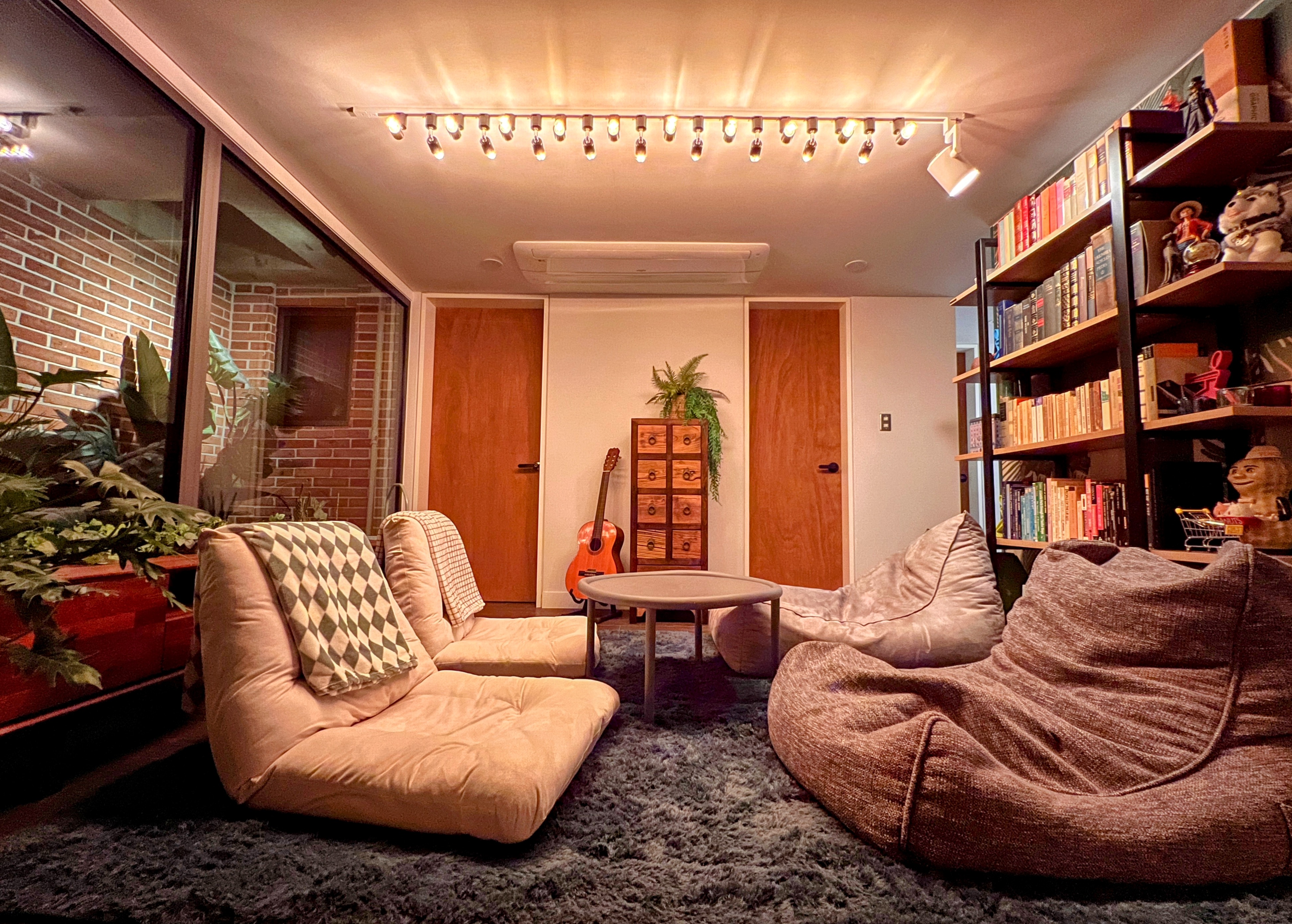 This is accommodation in a newly built villa with pretty red brick on a hill overlooking old Heukseok (meaning black stone) neighborhood. Enjoy a relaxing space decorated in green them and biophilic style using natural wood.