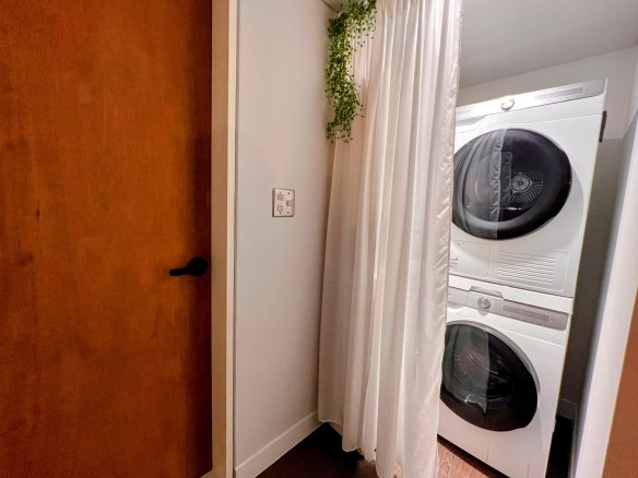 - A washing machine and dryer in unit, shared by all guests.