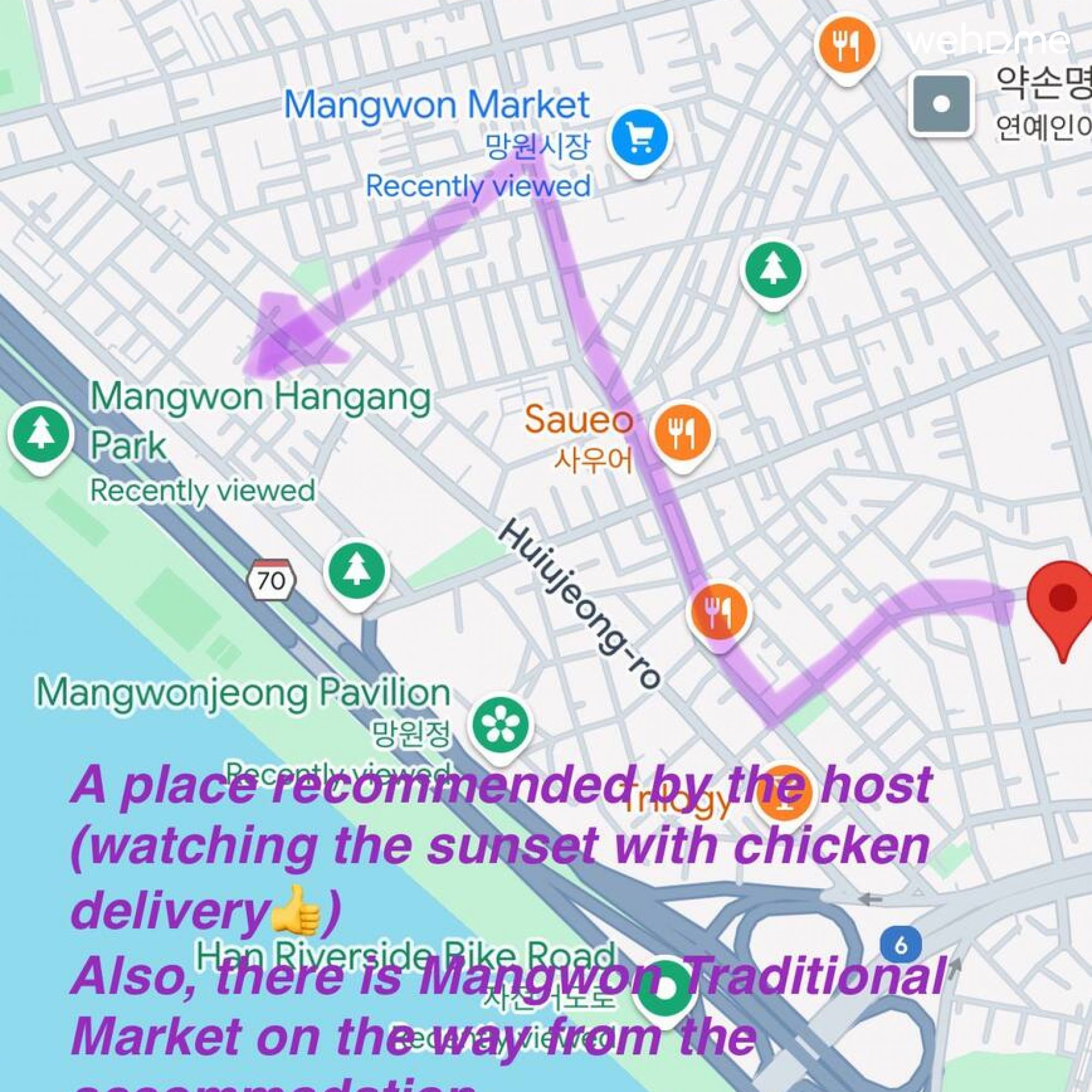 ** ヒーリングハウス ⇄ マンマーケット、漢江公園