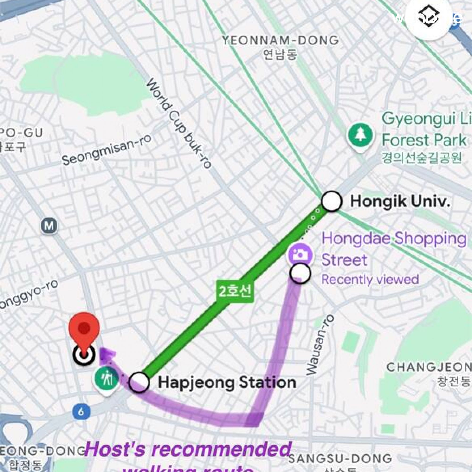 弘大、延南、上水、望遠鏡などの人気スポットが徒歩圏内