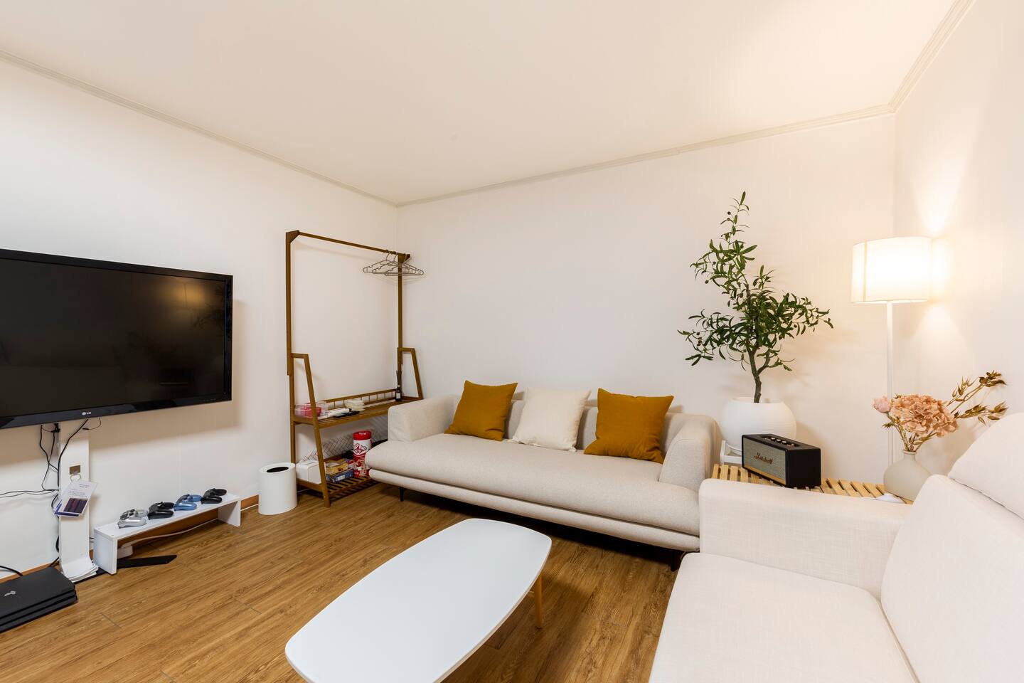 비품 : 55인치 TV, 3인용 쇼파2개, 8인용 식탁, 플레이스테이션, 각종 보드게임(10여 종)