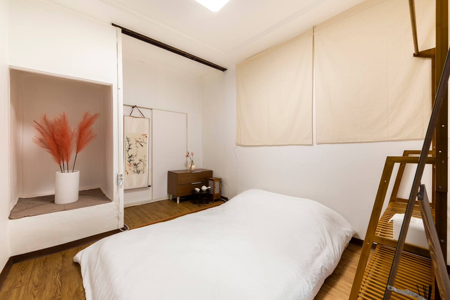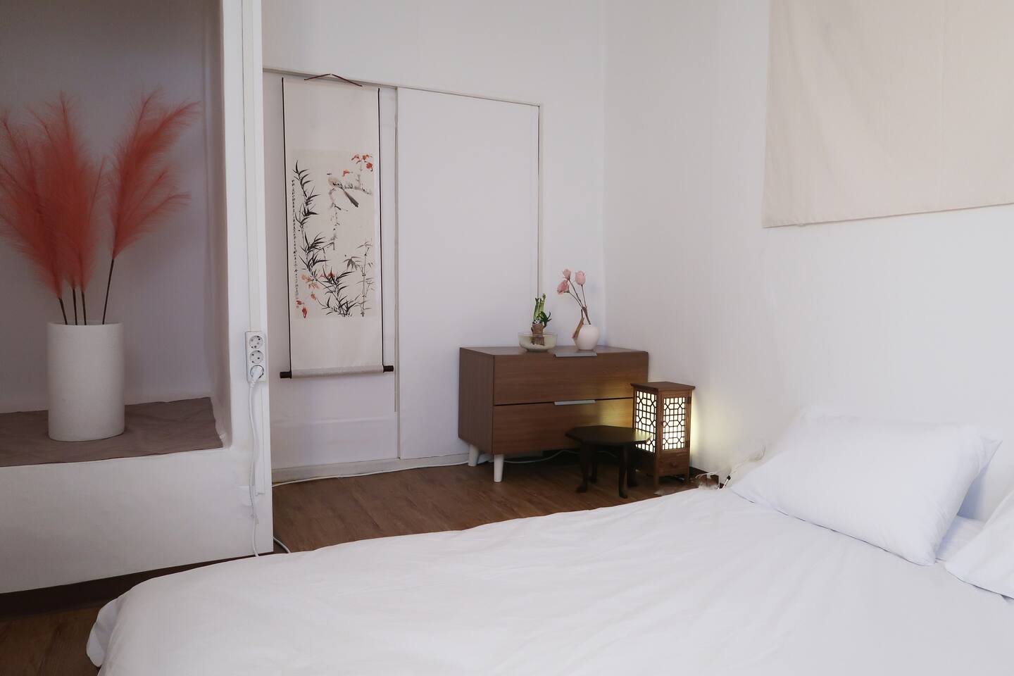 비품 : 퀸사이즈 토퍼매트리스, 행거, 옷장, 전통 무드등, 족자