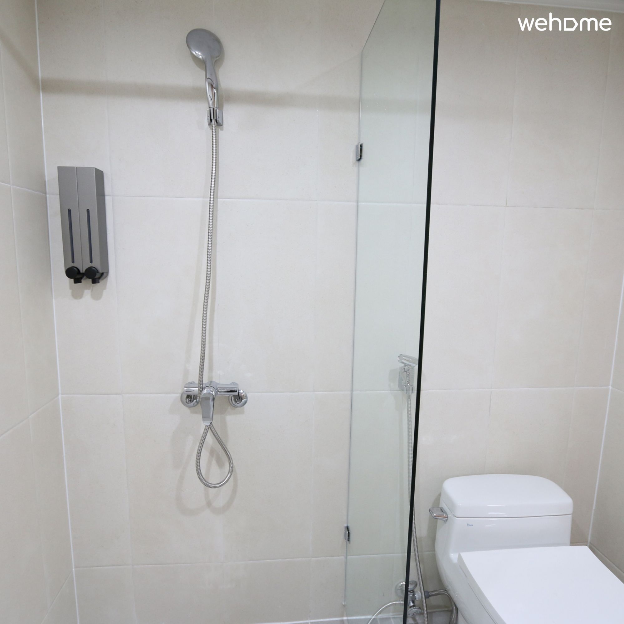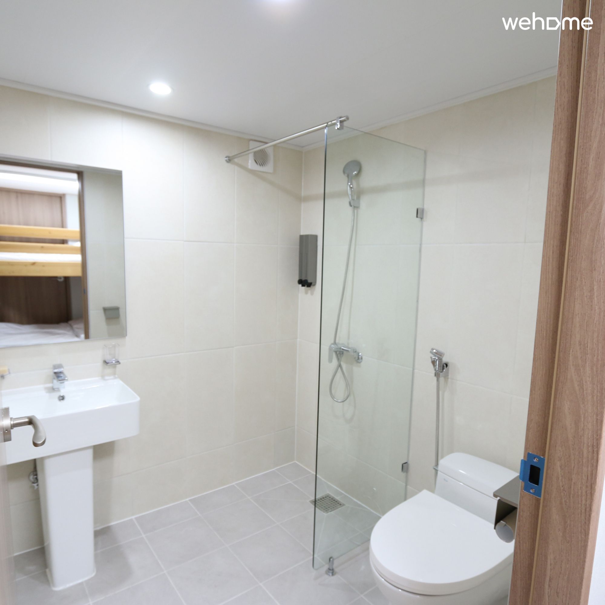 *The shared bathroom has multiple compartments and a shower room with a locking device.