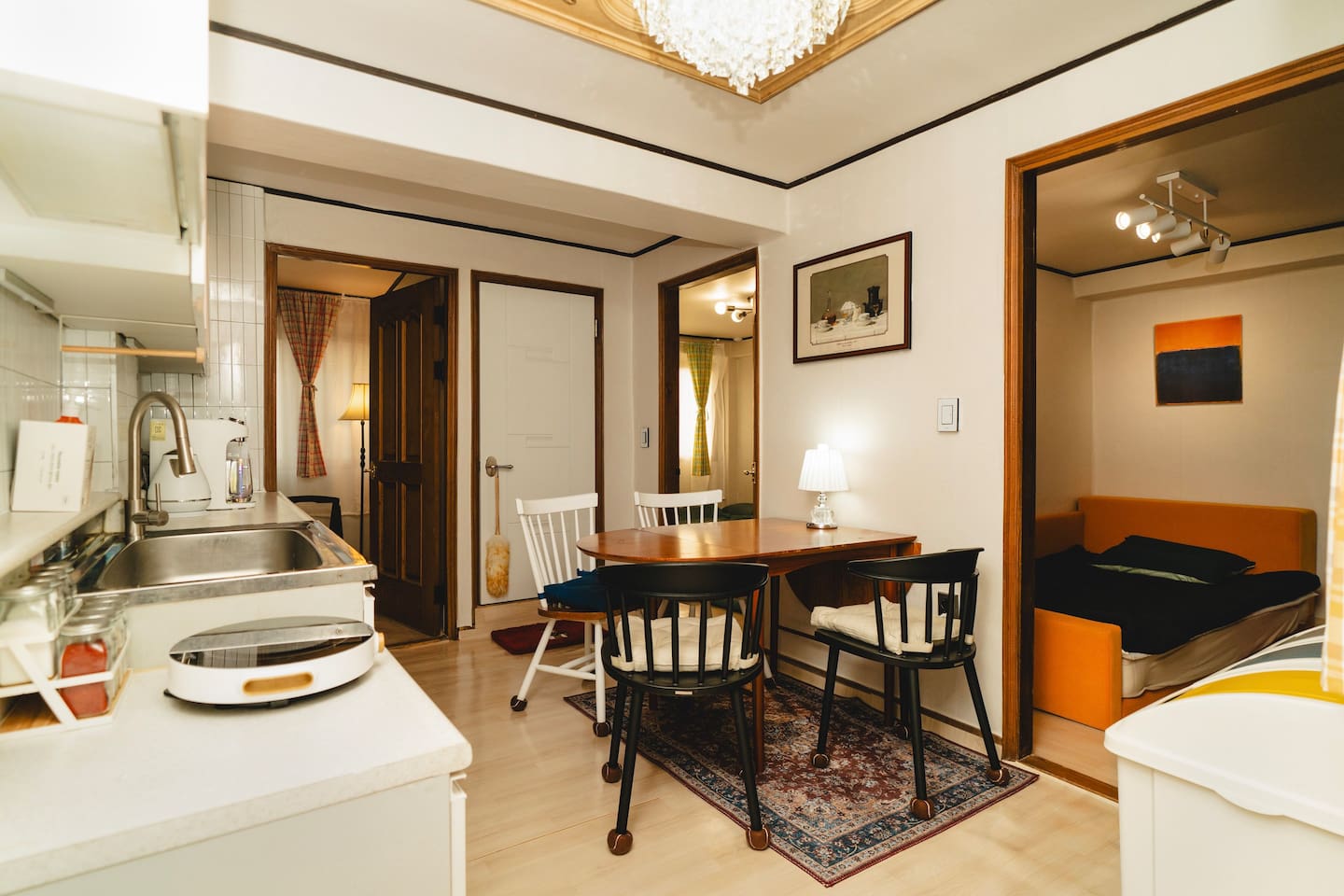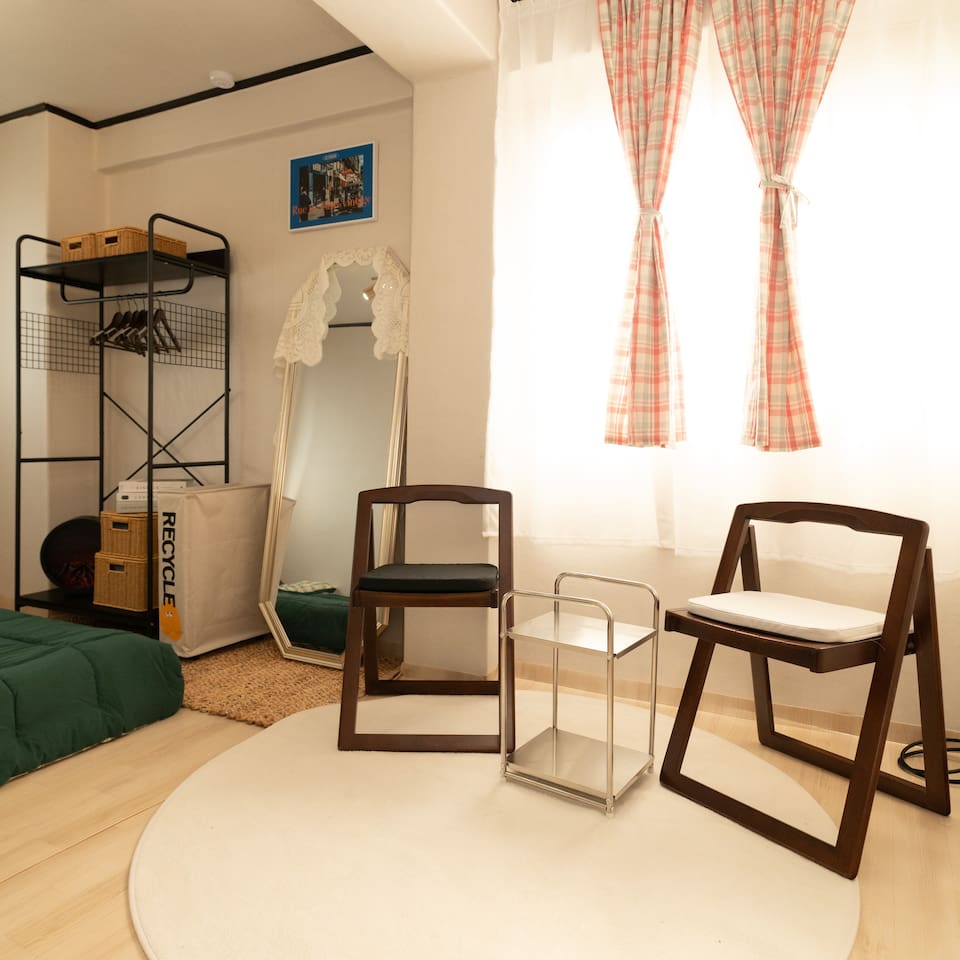 ✔ Bedroom 1: When you open the traditional Korean wooden door, you will see a beautiful roof. We have prepared a table and chairs so you can enjoy a cup of tea while looking at the view of Korea through the roof. Take a moment to relax! Also, please use the provided hanger to store your precious clothes :) We provide a spacious sleeping space with one queen-size bed.