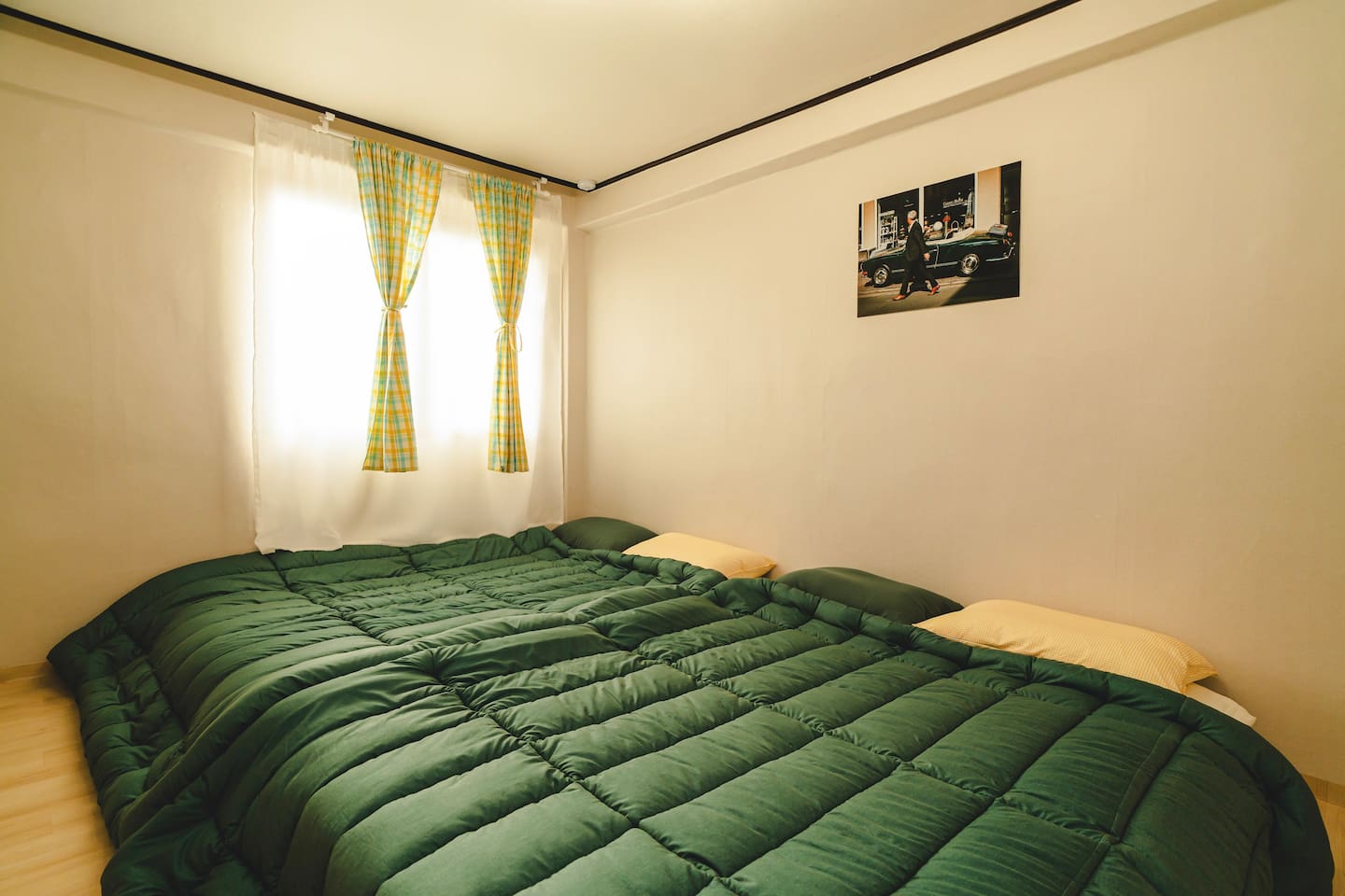 You can use the entire house, including 1 living room, 3 rooms, 2 double queen beds, 1 queen bed, 1 single bed, and 1 bathroom, offering spacious accommodation.