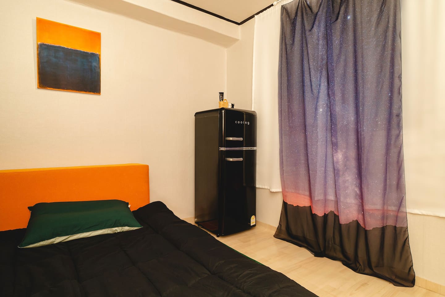 ✔ Bedroom 3: It has one single bed and a refrigerator with a freezer.
