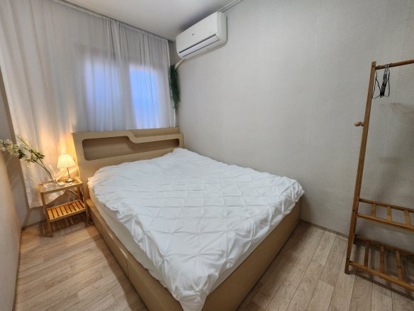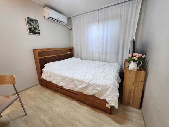 There are two rooms and a kitchen/living room, and each room has a queen-size bed :) * For 2 people, 1 bed is used in principle, and for 3-4 people, 2 beds are opened. * Parking is not available....