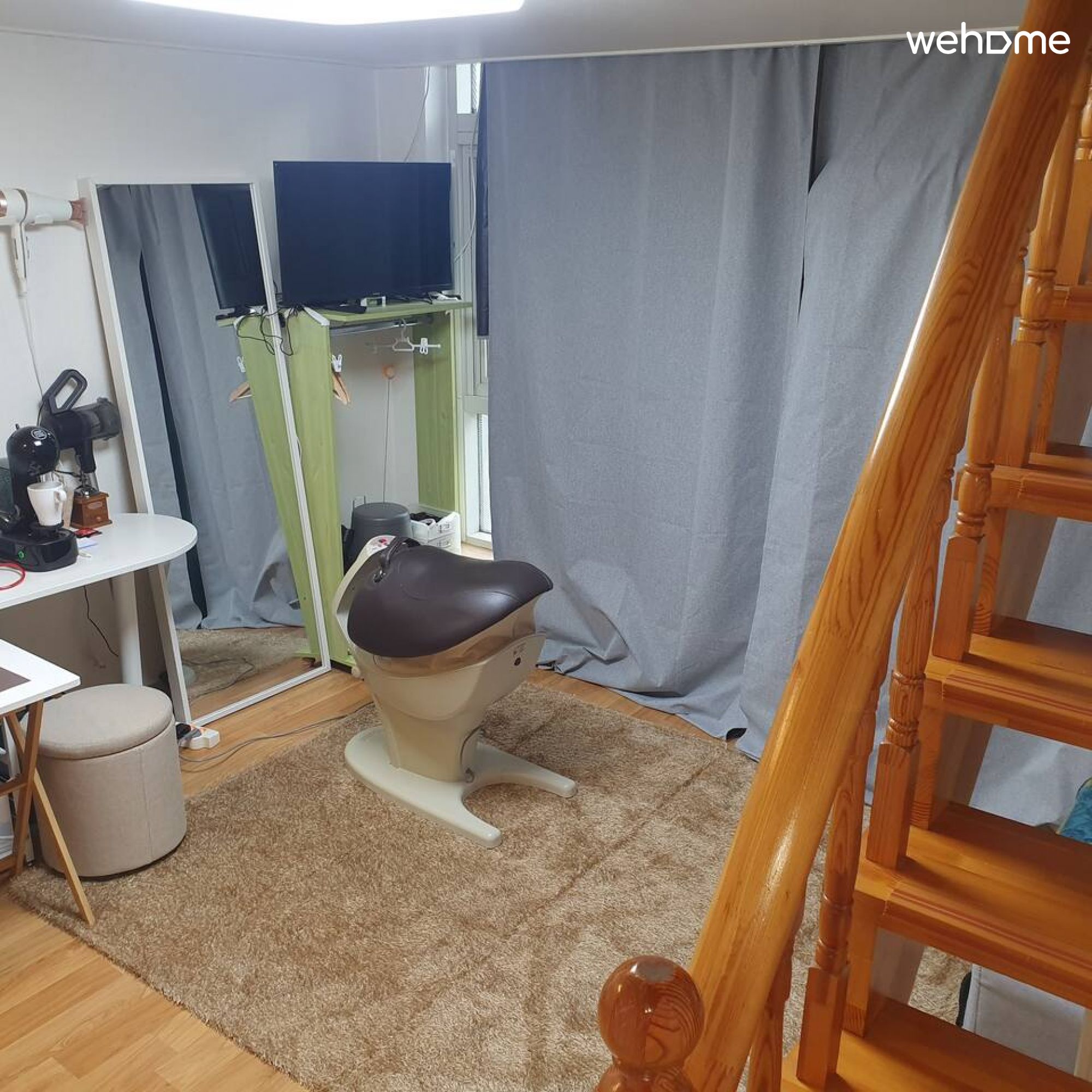 1층을 거실과침실 티비 시청, 2층을 침실로 사용 가능 하도록 넓은 완전복층 2m구조. 큰키도 서서 다닐 수 있습니다.