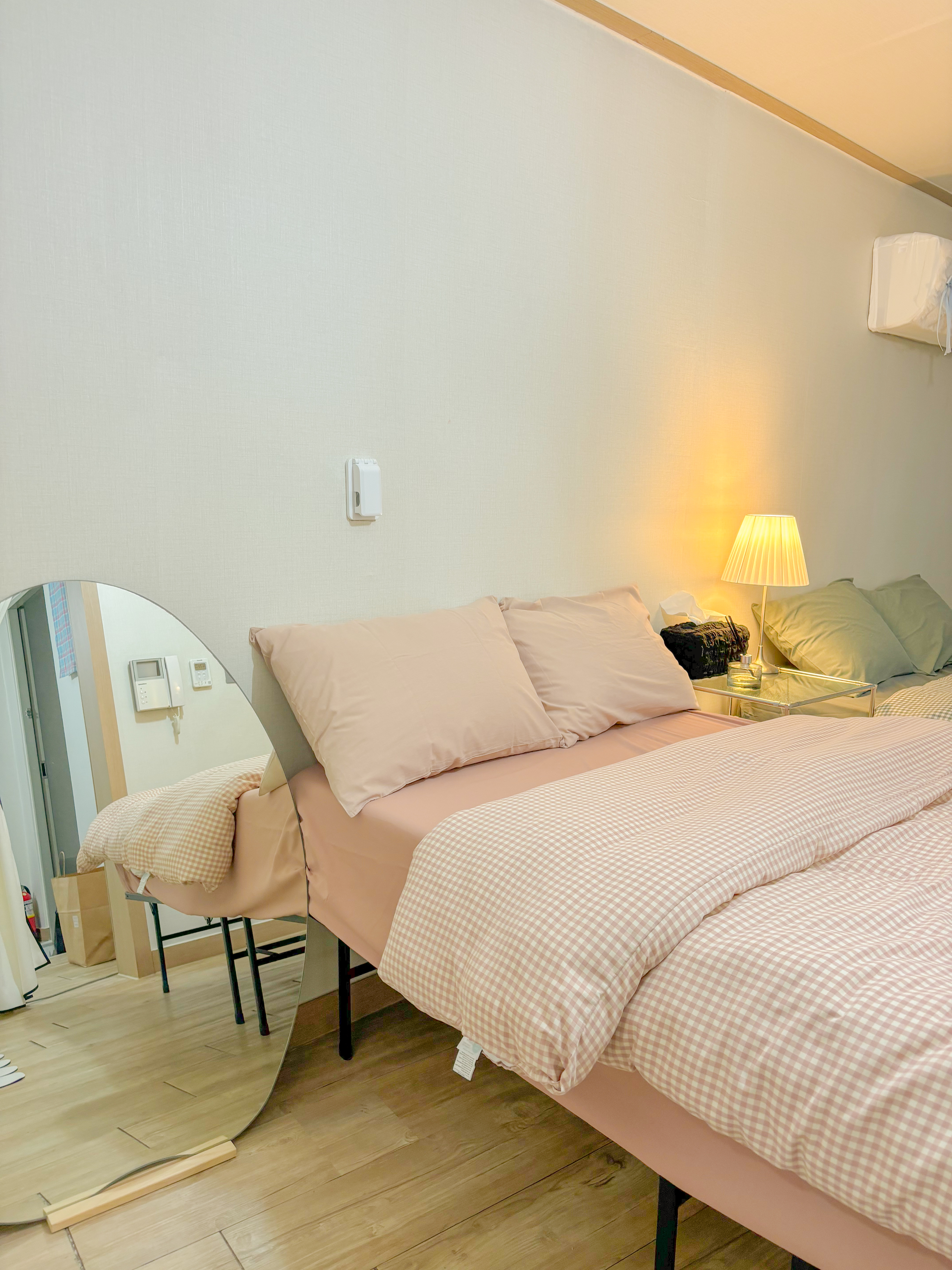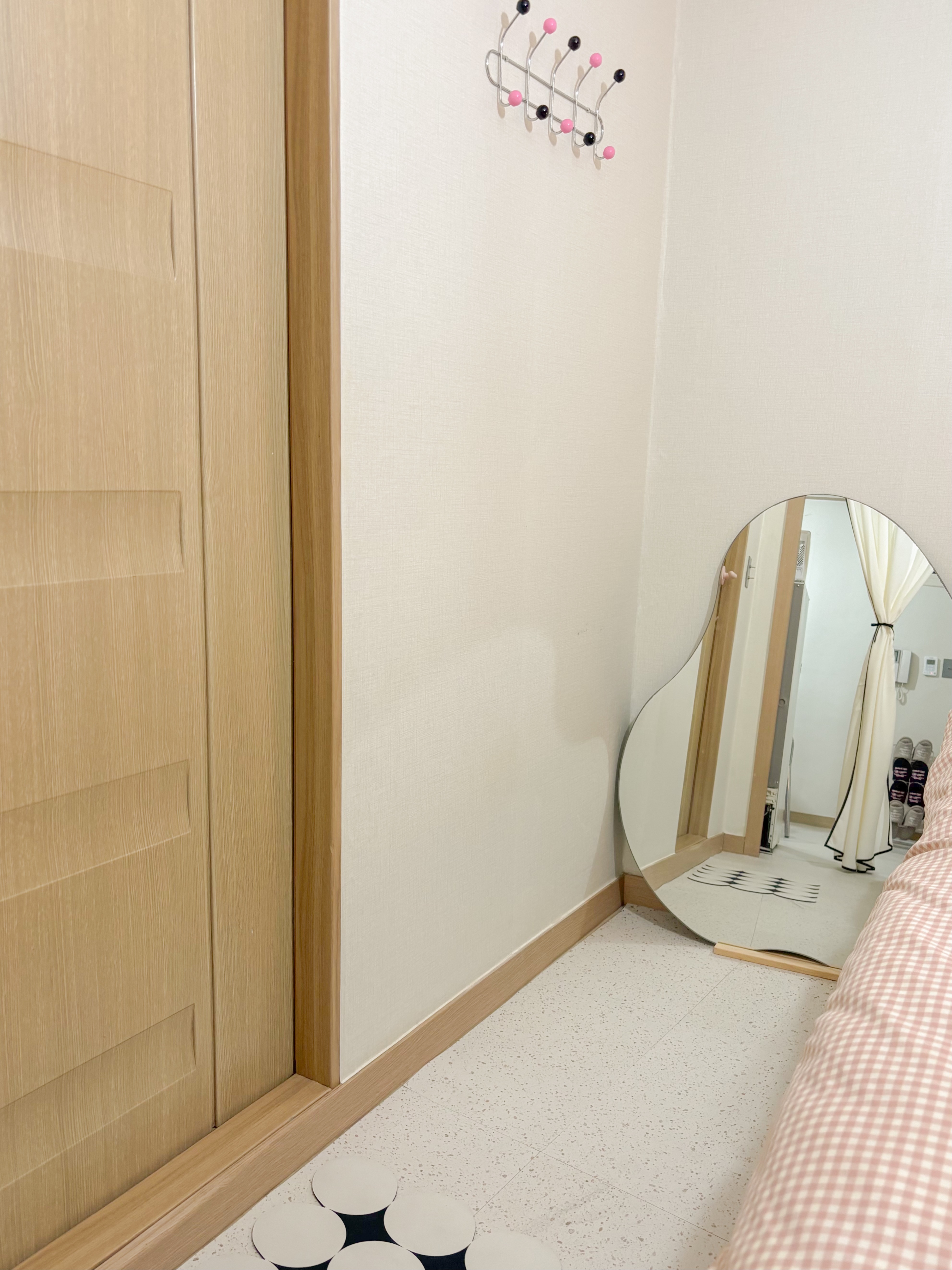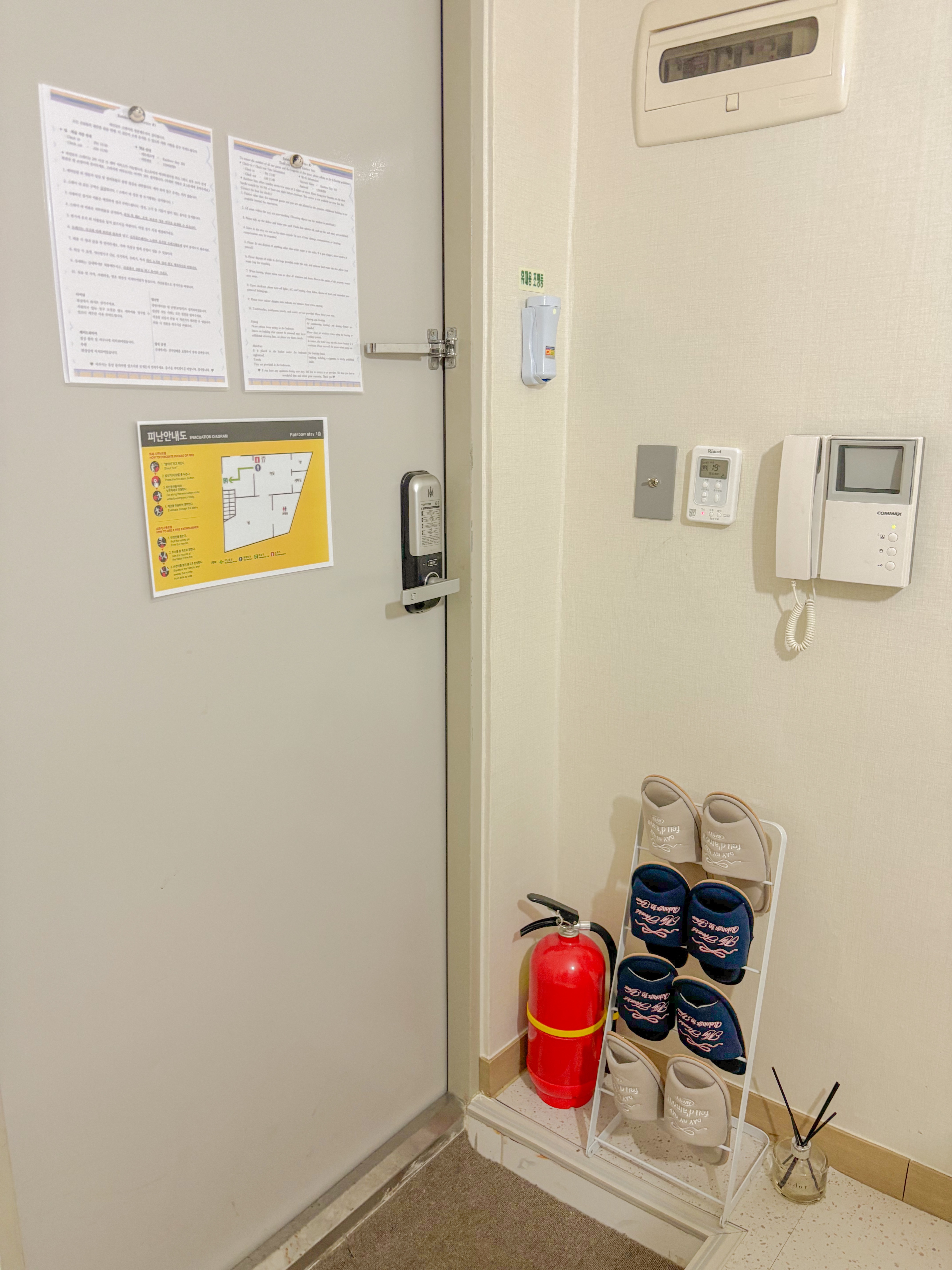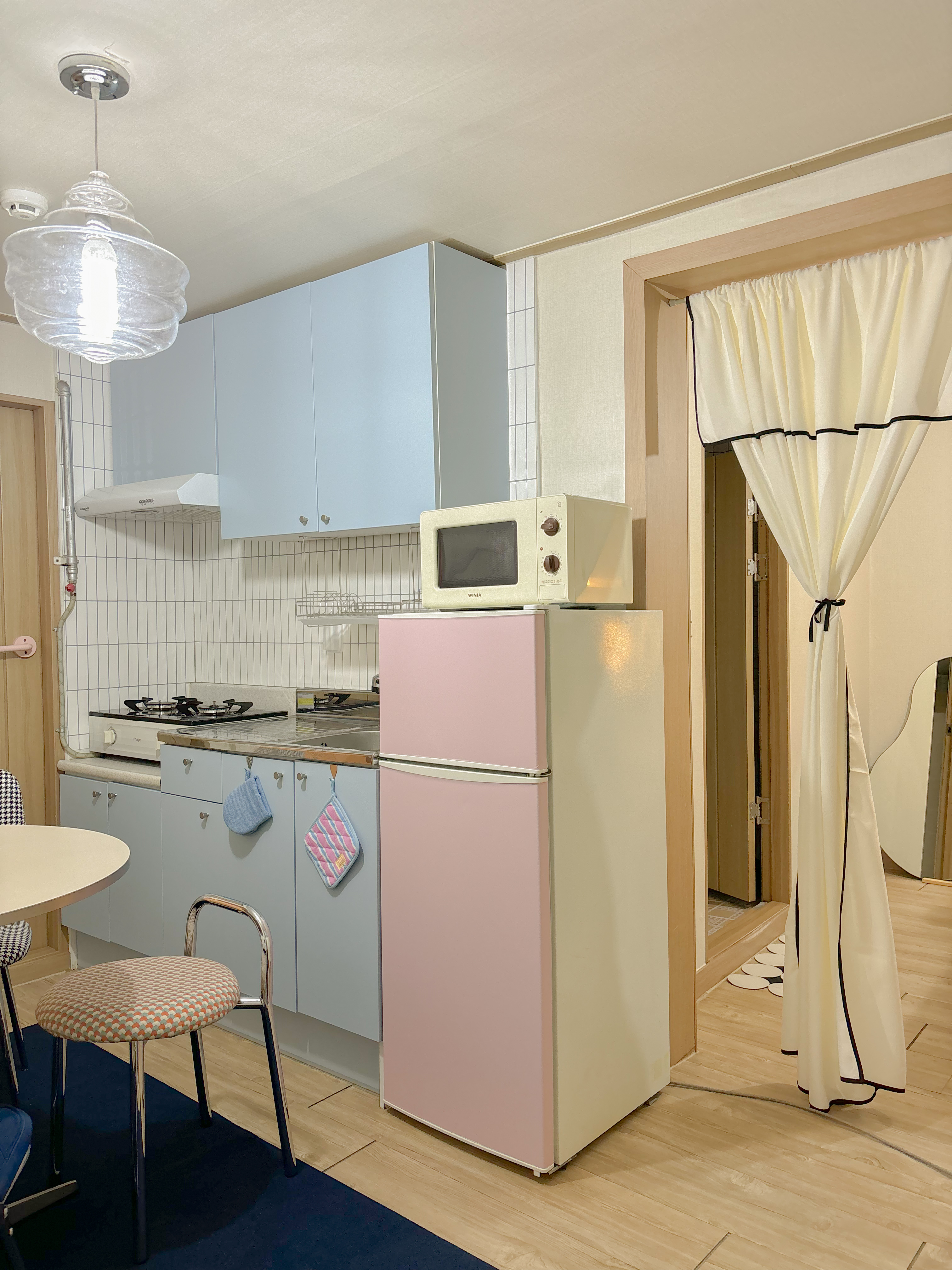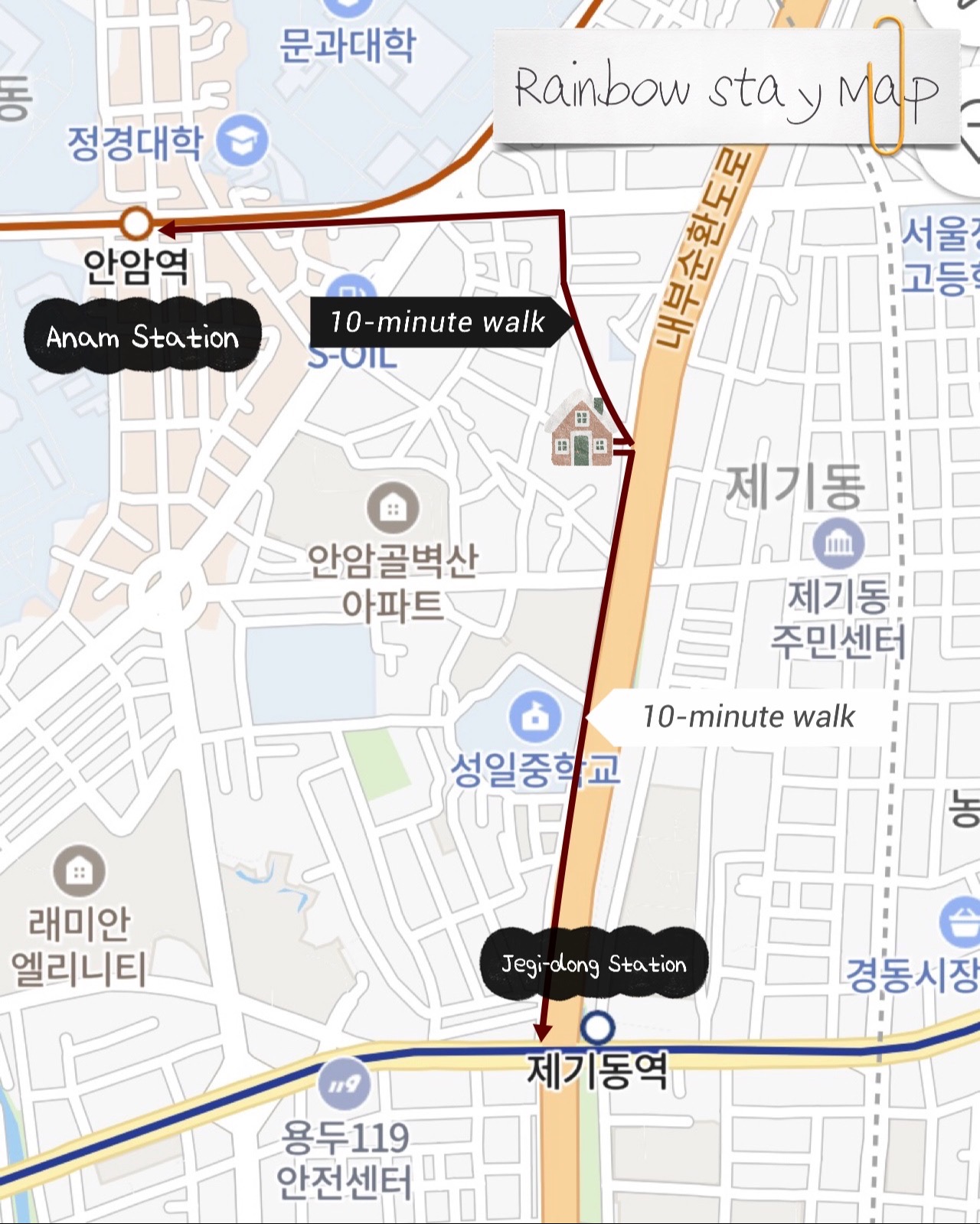 Hello, this is Rainbow Stay #1, a quiet resting space with a mid-century modern feel. All fabrics including bedding and rugs at Rainbow Stay are sterilized and disinfected by going through a laundry service every time. Koreans can only stay through Wehome. We will inform you of the accommodation number later. It is a 10-minute walk from Anam Station and Jegi-dong, and it is good to take a walk on the riverside promenade in front of the accommodation. It is located in Dongdaemun-gu, so you can quickly get to the center of Seoul, such as Gocheodae, Kyunghee University, Hankuk University of Foreign Studies, Seoul National University, Gyeongdong Market, Cheongnyangni, Dongdaemun, Myeongdong, Itaewon, and Seoul Station. It is close to Jegi-dong Station, so you can feel the unique Korean sentiment as it is close to major Seoul attractions, nearby department stores, movie theaters, Cheonggyecheon, and traditional markets. It is a two-room space divided into a bedroom, kitchen, and dining area. It can accommodate up to 4 people with a super single size and queen size bed. We hope you have a special time in a cozy yet sophisticated atmosphere. Thank you.