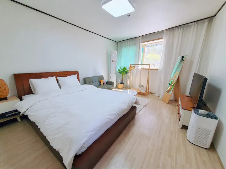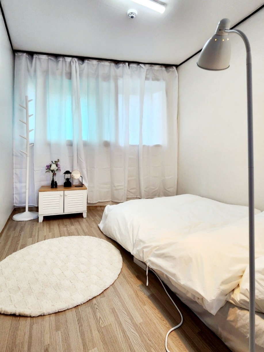 체크인이 4시라서 좀 늦은 감이 있긴 했지만 그래도 들어가니 에어컨도 미리 켜놔주셔서 너무 시원했고(날씨가 너무 덥고 습하고 비내려서 더욱더!) 깨끗하고 쾌적했어요! 사실 17개월 아기를 데리고 자야해서 좀 걱정이었는데 아기랑 저랑 매트리스만 깔린 방에서 자서 떨어질 걱정 없이 편하게 잤고 열이 많은 남편은 티비가 있는 큰 방에서, 아빠는 싱글침대에서 편하게 주무셨어요~
